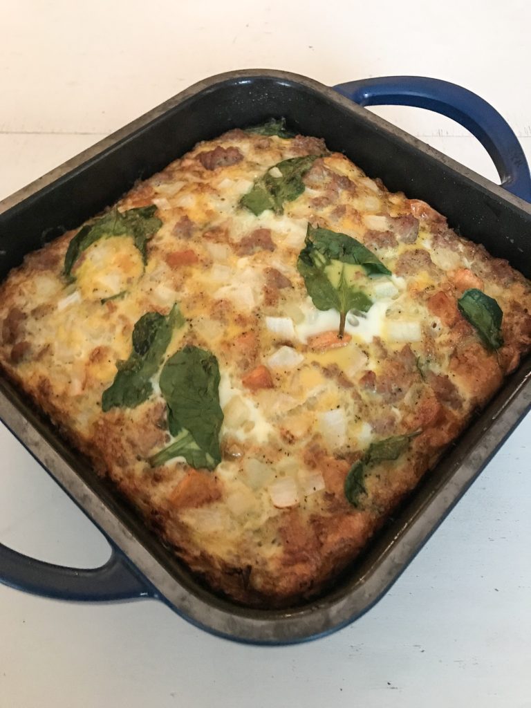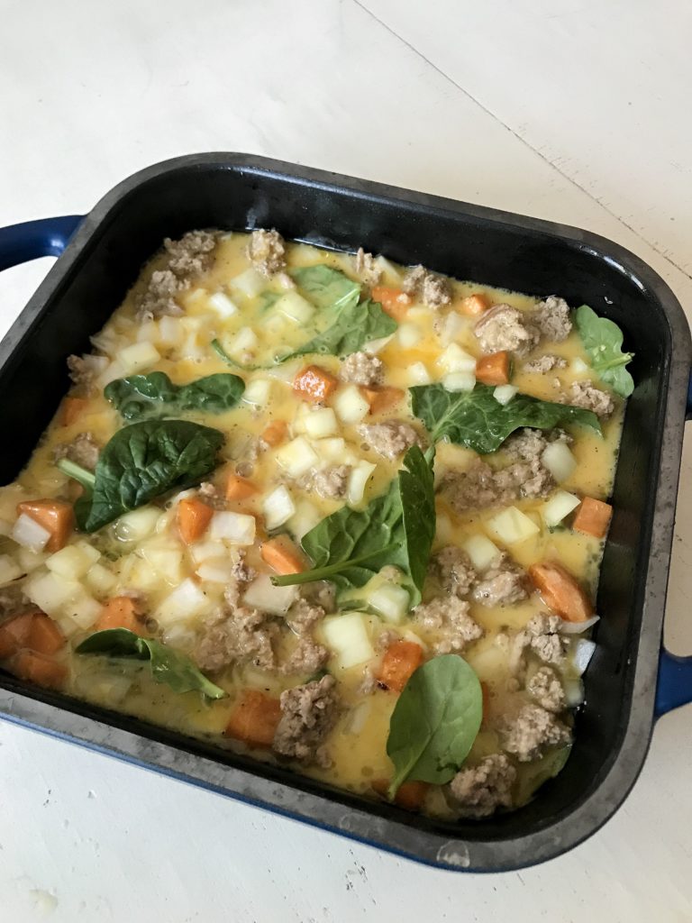 There are few things better in life than a morning where you don’t have to think about what you’re going to have for breakfast. For me, preparing breakfast options ahead of time is much easier than being creative with other meals. Now, that being said, I love eggs. So my go to’s almost always include them. This recipe is no exception, but with the other wholesome ingredients, there is so much more to look forward to when eating this turkey/spinach/sweet potato egg bake.